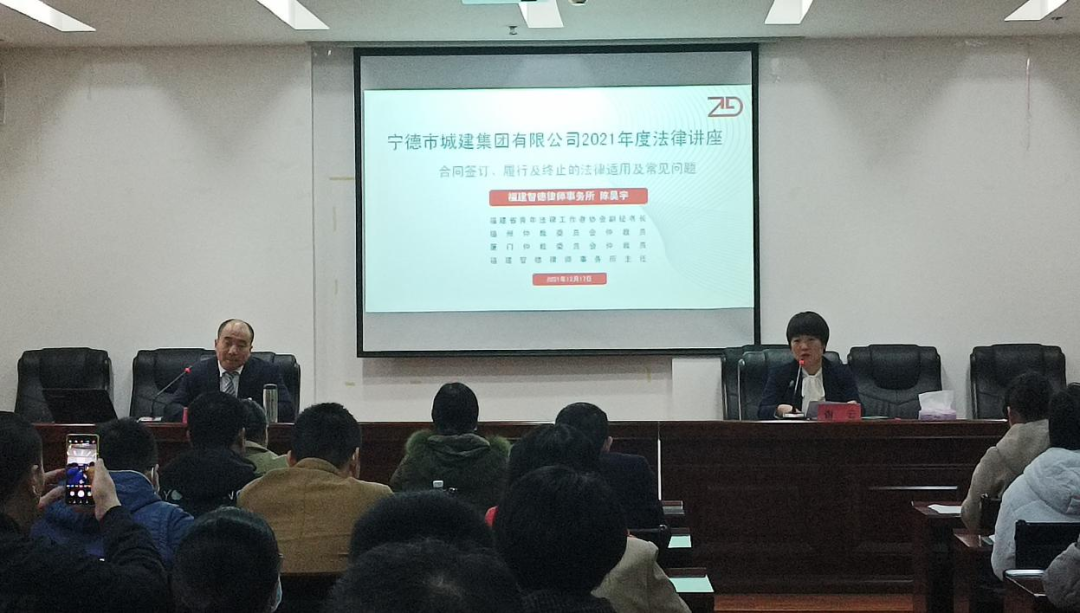 會(huì)上邀請到集團(tuán)公司法律顧問陳昊宇律師宣講憲法的相關(guān)知識(shí)、解讀《寧德市戶外廣告和招牌設(shè)置管理?xiàng)l例》,并針對合同相關(guān)法律知識(shí)開展專題講座。集團(tuán)公司六十多名員工參加學(xué)習(xí)。