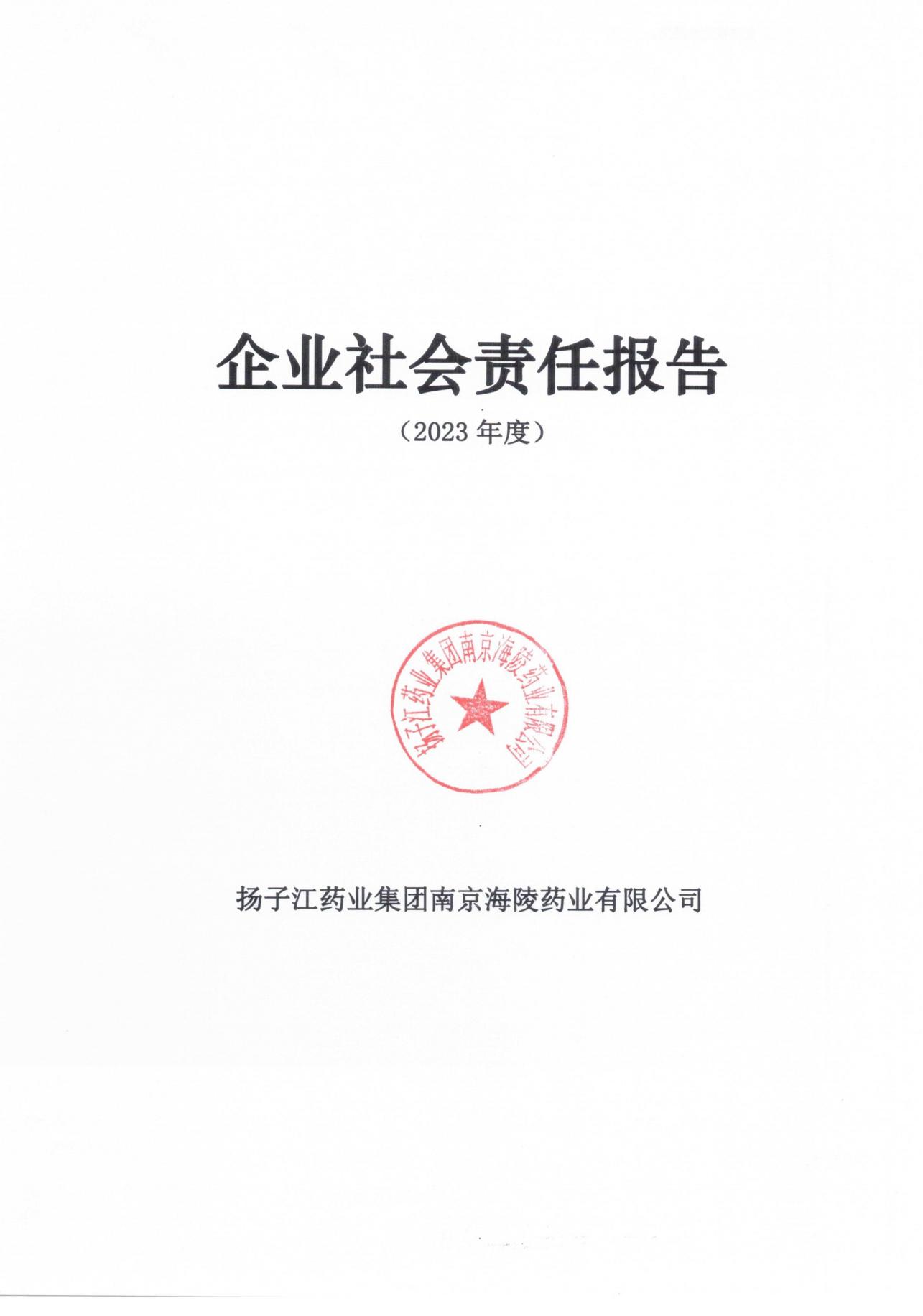 揚子江藥業(yè)集團南京海陵藥業(yè)有限公司社會責(zé)任報告公示