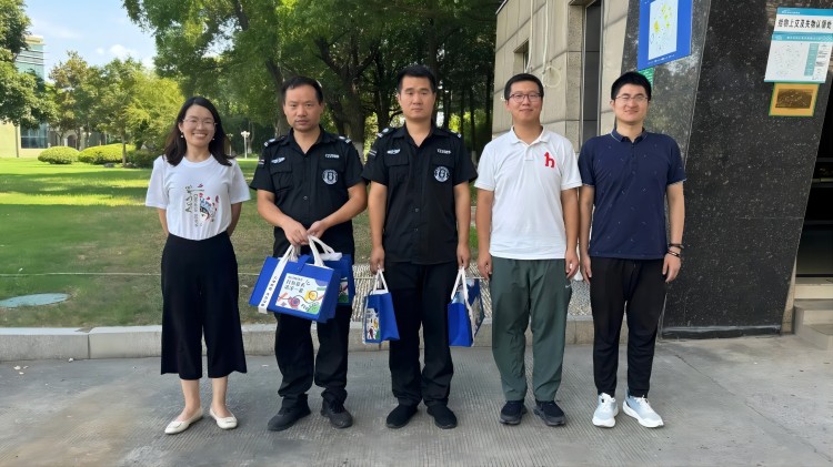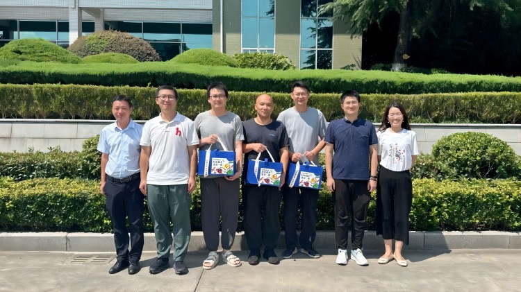 南京海陵黨支部書記李靜、黨支部副書記車越、財(cái)務(wù)部部長郭垂來代表工廠慰問奮戰(zhàn)在一線的員工,為他們送上防暑禮包。