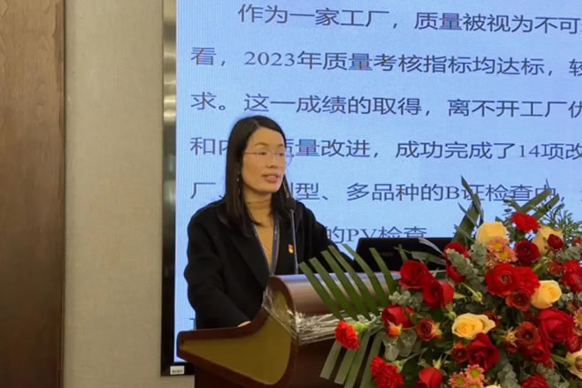 會(huì)議伊始,海陵黨支部書(shū)記、海陵工廠廠長(zhǎng)助理李靜做出以《踔厲奮發(fā)新征程,終身成長(zhǎng)再起航》為題的海陵藥業(yè)2023年終工作報(bào)告??偨Y(jié)了海陵人2023年展現(xiàn)出的拼搏精神和奮斗姿態(tài),以及取得的來(lái)之不易的成果,更為海陵明確了2024年的努力方向。