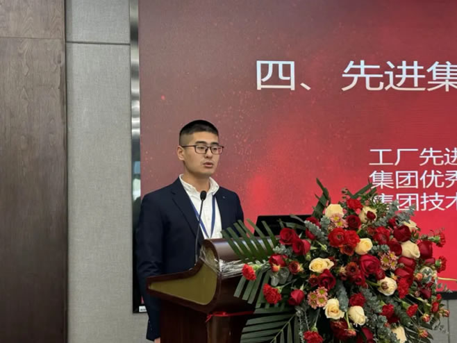 工廠先進(jìn)科室檢測(cè)中心趙旭偉主任、集團(tuán)優(yōu)秀管理干部竺望龍主任、集團(tuán)技術(shù)標(biāo)兵竇可銀作為先進(jìn)代表進(jìn)行表態(tài)發(fā)言。