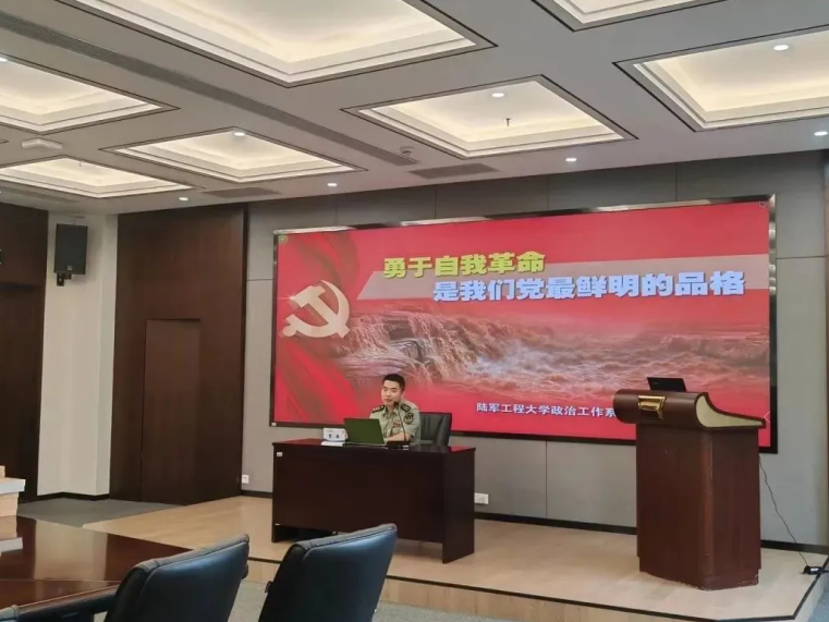 會(huì)議的第二項(xiàng),全體與會(huì)人員進(jìn)行了專題黨課學(xué)習(xí)。陸軍工程大學(xué)政治工作系曹超副教授為大家進(jìn)行了主題為《勇于自我革命是我們黨最鮮明的品格》的專題匯報(bào)。曹教授肯定了海陵黨支部的凝聚力、戰(zhàn)斗力,并以黃培炎和毛澤東關(guān)于“如何跳出治亂興衰的歷史周期律”的探討為切入點(diǎn),從以下三個(gè)方面進(jìn)行了詳細(xì)闡述: