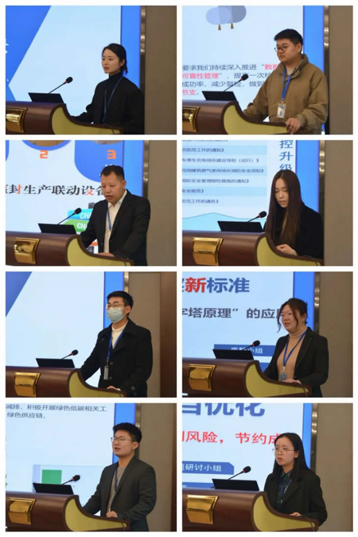 3月14日13:15,比賽正式開始。本屆大賽共有14個團隊參賽,涉及企業(yè)各業(yè)務(wù)模塊的創(chuàng)新應(yīng)用?!痘赥RIZ理論建立孟魯司特鈉中殘留溶劑的新方法》,《亞硝酸鹽過濾條件優(yōu)化-提升一次性檢驗合格率》、《TOC項目優(yōu)化》三個課題重點介紹了新結(jié)構(gòu)化工具在質(zhì)量管理中的結(jié)合應(yīng)用;《產(chǎn)品A包衣效果改進》、《小容量洗灌封設(shè)備精準維護與效率提升》兩個課題探討如何提高產(chǎn)品生產(chǎn)環(huán)節(jié)的質(zhì)量和效率;《基于動力中心制冷系統(tǒng)節(jié)能水泵的設(shè)計與應(yīng)用》、《提高工廠經(jīng)營成本競爭力》、《提升固體制劑產(chǎn)品排產(chǎn)效率》則在不同維度聚焦降能耗、控成本、提效率;《倉儲系統(tǒng)確認方法改進提升》、《如何建立潔凈服重復使用考察新標準》、《精準狙擊冗雜驗證過程》在驗證管理方面做出新探索;《基于智能物聯(lián)技術(shù)的廠區(qū)新能源車輛管理模式》、《零星工程管理模型下的供應(yīng)商管理體系》、《以戰(zhàn)促訓——構(gòu)建全員信息安全新紀元》實現(xiàn)了“業(yè)務(wù)+信息化”的組合創(chuàng)新,聚焦當下熱門的信息化、智能化轉(zhuǎn)型。